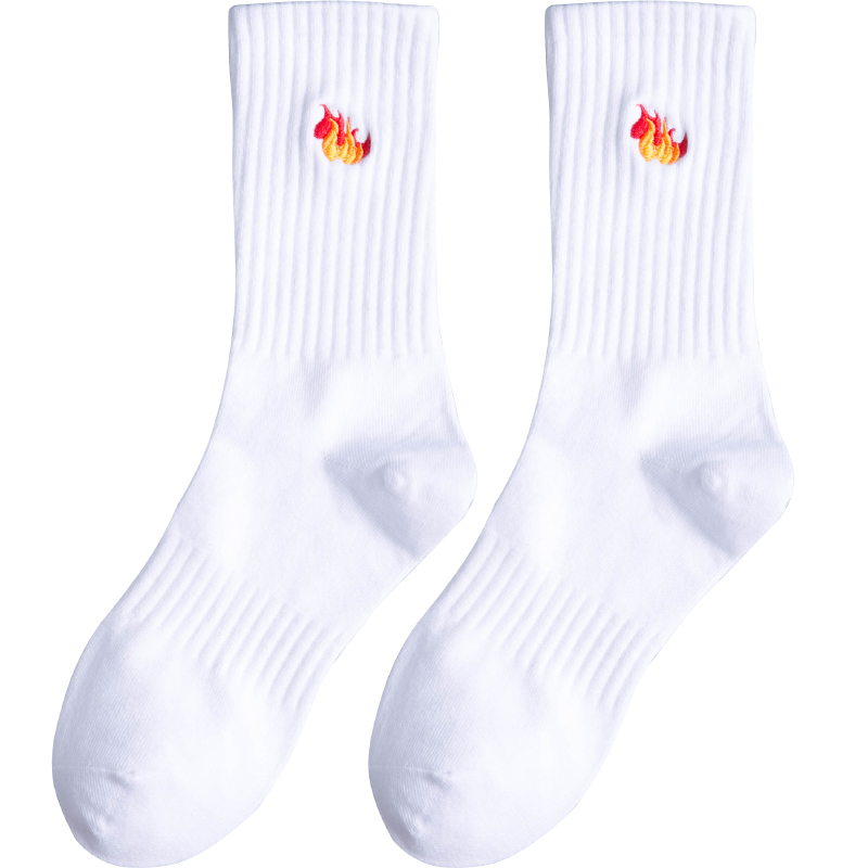 Autumn Winter Long Socks Men's Pure Cotton Medium Tube Full Cotton Suction Sweats Deodorant 1 Thick White Sports Chains High Street High Waist-Taobao
