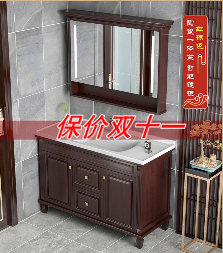 Spot American Oak Bath Cabinet Ceramic Integrated Basin Floor Washbasin New Chinese Double Basin Wash Terrace Custom-Taobao