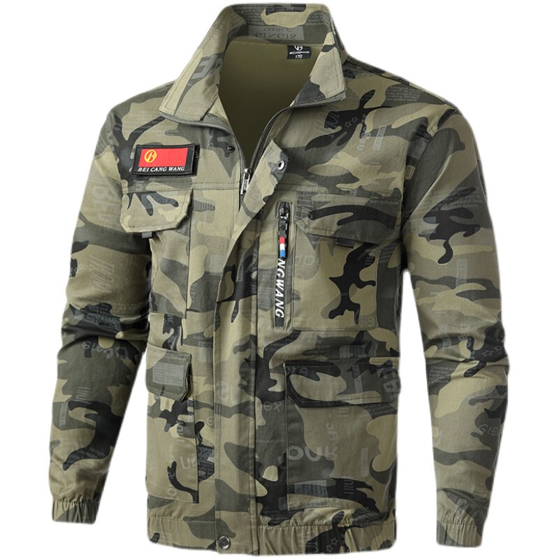 Welder camouflage suit male spring and autumn pure cotton elastic work clotheAnti-hot wear and comfortable add-on welder labor insurance