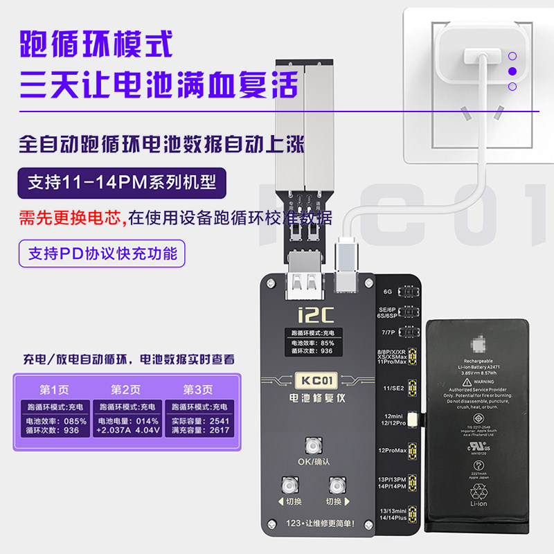 i2c KC01 battery repair instrument 6-14PM Run battery electric core circulating machine plug-in flat cable change efficiency health-Taobao