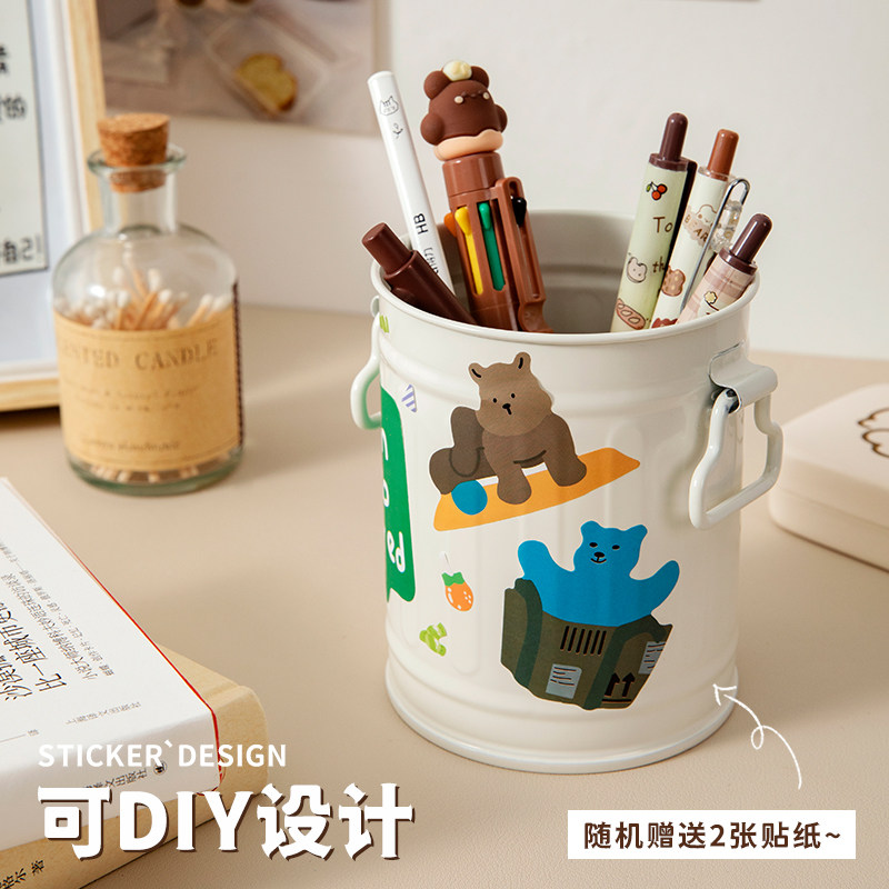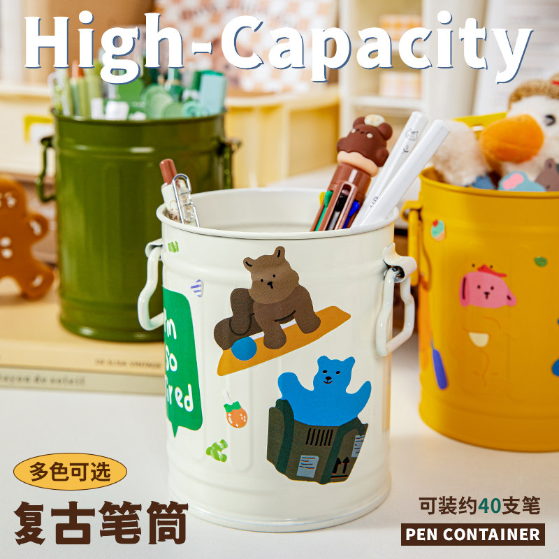 Three years two classes Iron art retro pen holder Large capacity Advanced senses light extravagant office desktop containing box multifunction minimalist style student creative pen barrel cute children boy girl stationery-Taobao