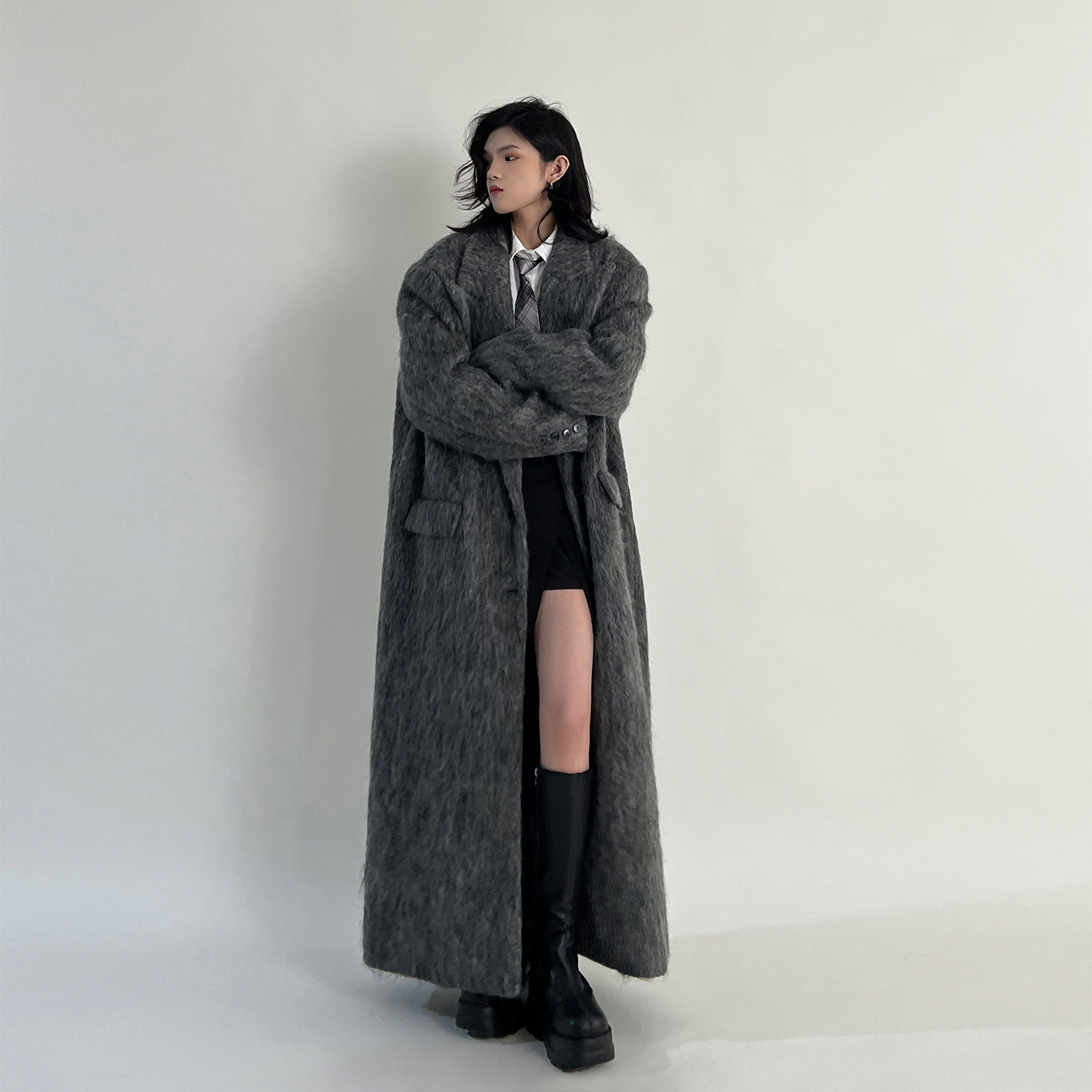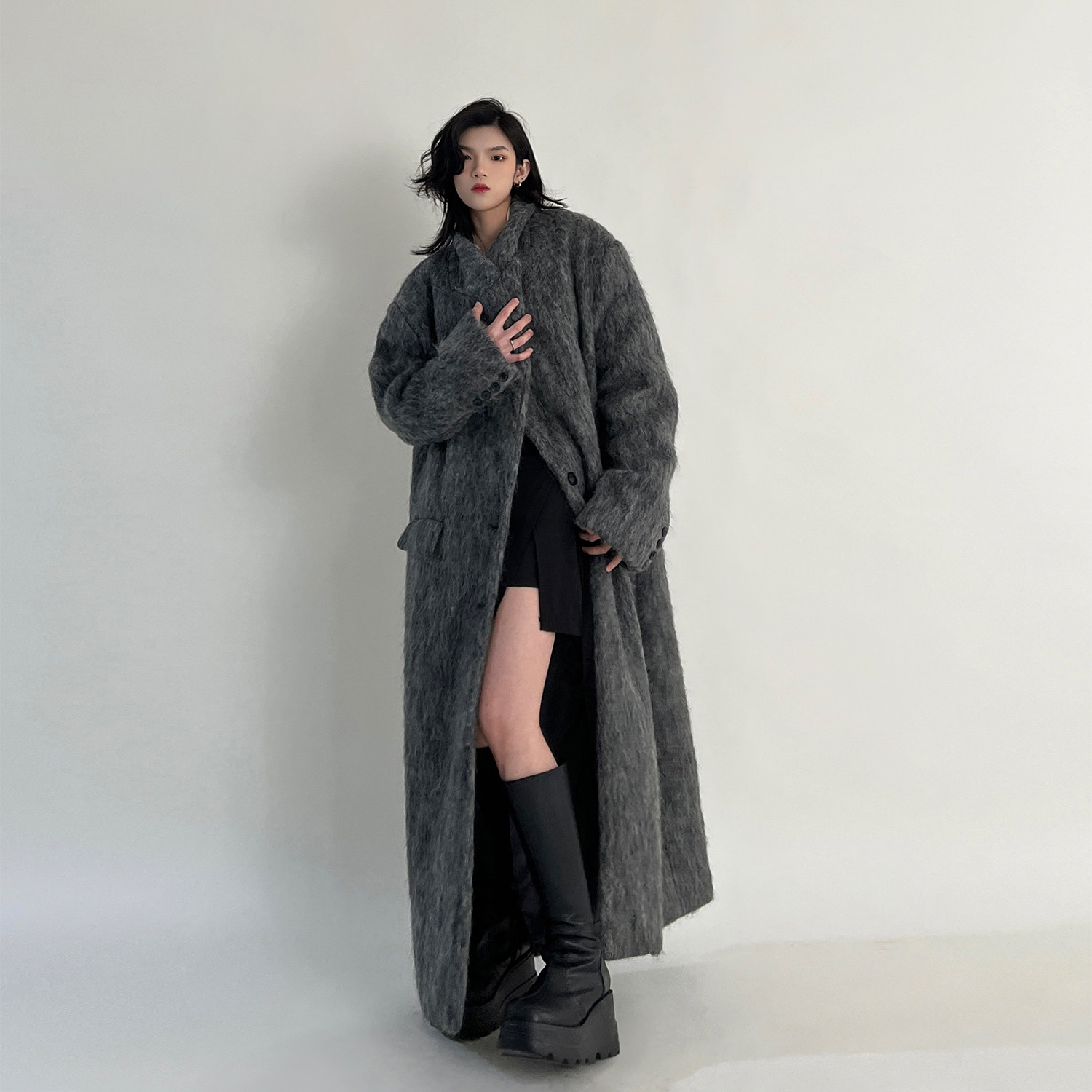 Temperament Lazy Broadedition Han Style Superior Sense Herben Wind Grey Lengthened Woolen Sweater Coats Women's Winter-Taobao