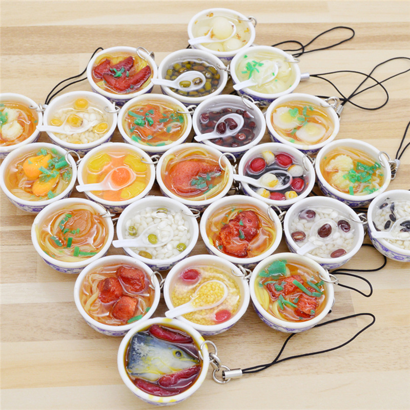 Creative Simulation Food Mobile Phone Chain Pendant Realistic Bowl Noodles Egg Noodles Beef Noodles Lanyard Chinese Wind Jewelry