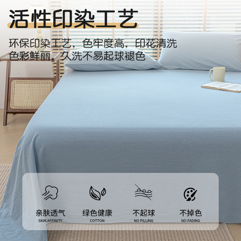 Pure cotton washed cotton sheet Single piece 100 All cotton quilts Single student Dormitory Single pillowcase Three sets Old coarse Buster Summer 3-Taobao