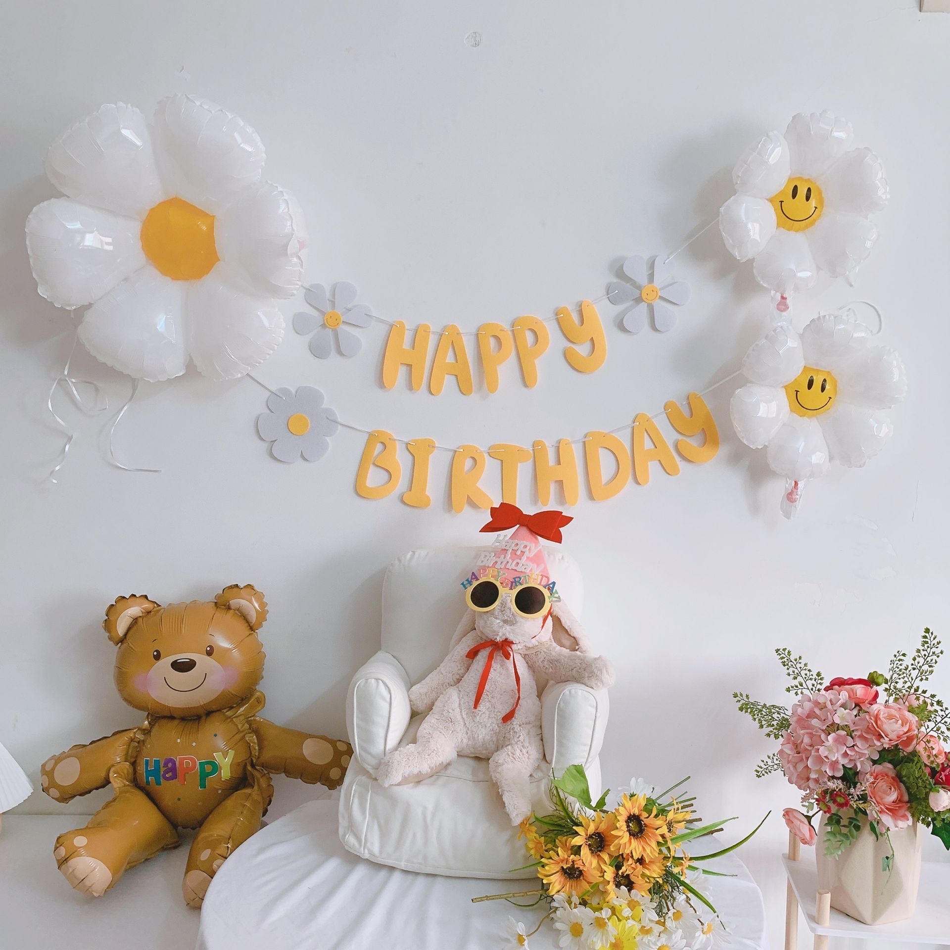 Set two sets of three sets (default 2) set four flowers pull flags 1 small flower balloon in balloon number flower powder hat 1 pair of yellow glasses a pair of pink glasses a pair of bear balloon 1