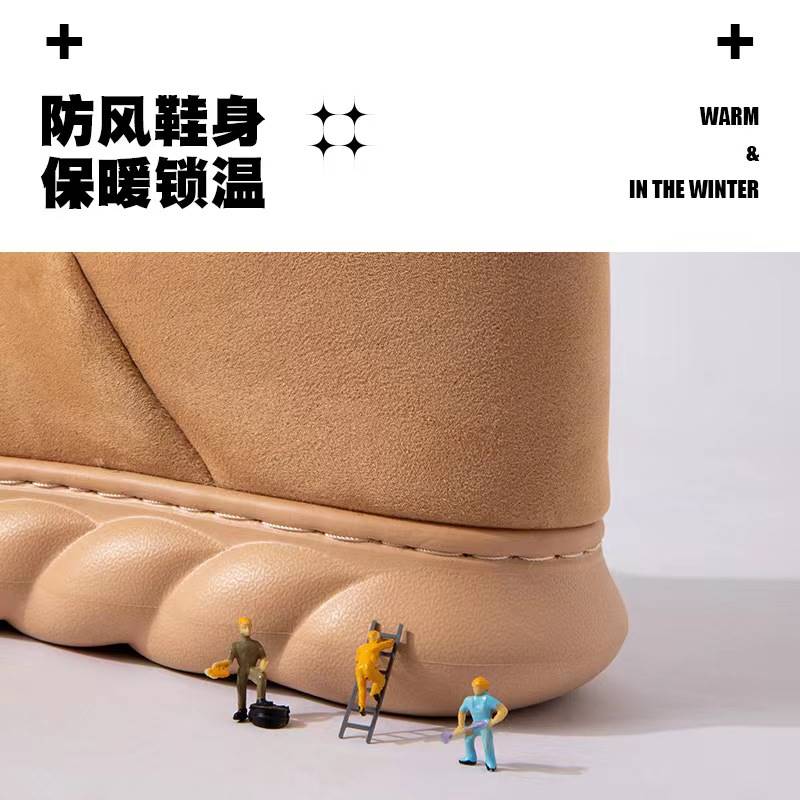 Snow boots women's winter home indoor household plus velvet warm thick bottom non-slip stepping dead feeling package heel cotton slippers