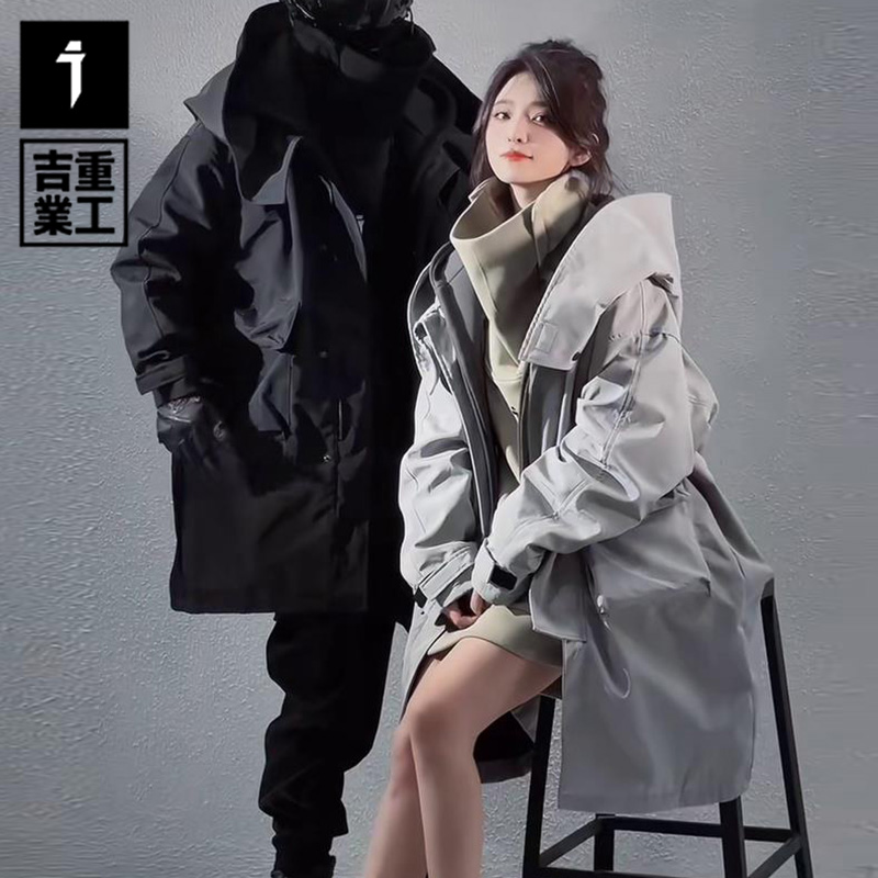 Giye Heavy work autumn winter tooling even cap leave Two wind clothes men and women loose in casual middle and cotton thickened jacket-Taobao
