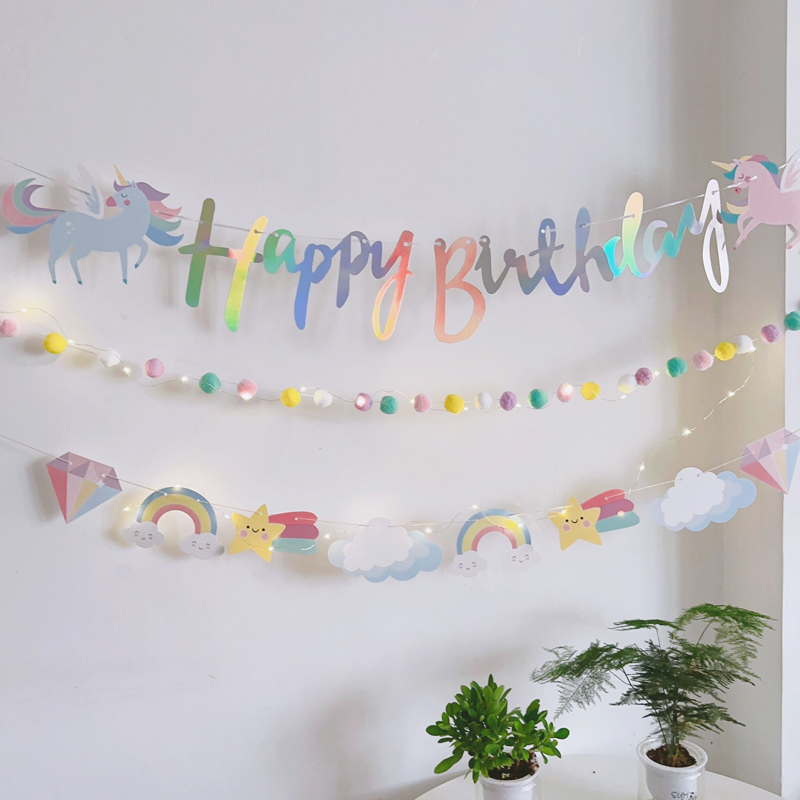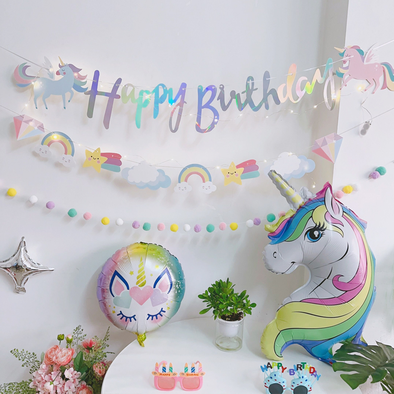 Unicorns pull the flag 3 lights string unicorns flag 3 unicorns round unicorns flag unicorn balloons bracket Macaron balloons 40 inch digital bracket 1 8 unicorn fan