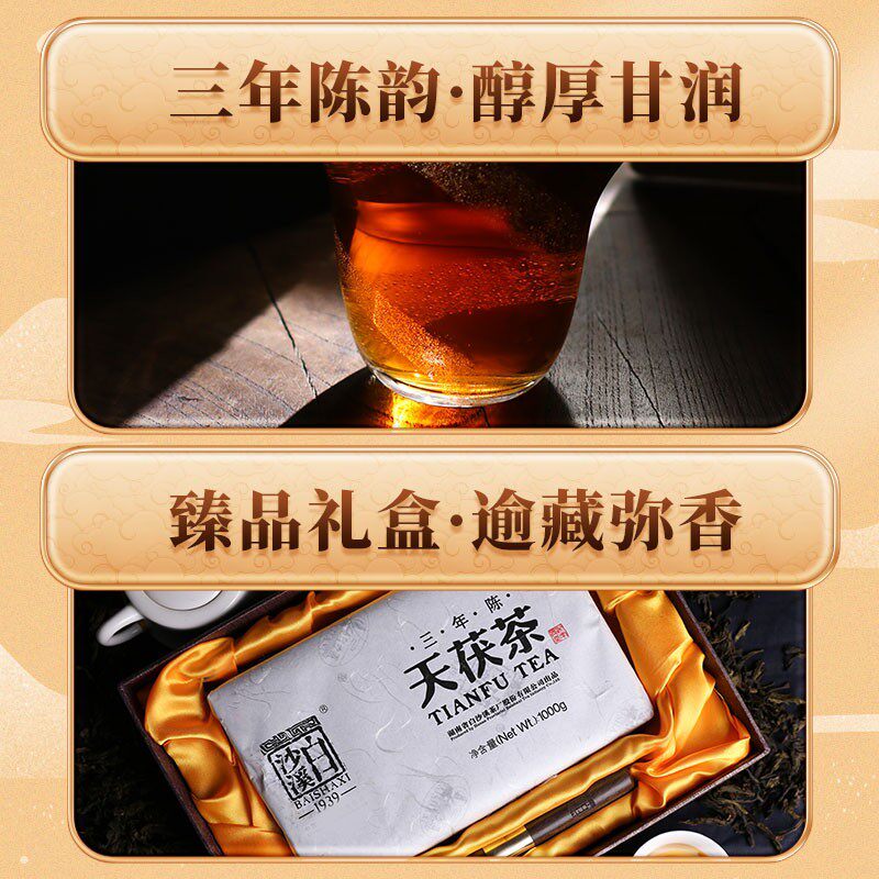 White Sand Creek 2020 Three years Chen Tianbao Tea 1kg Hunan Anhua Black Tea Gold Flower Brick Tea Authentic-Taobao