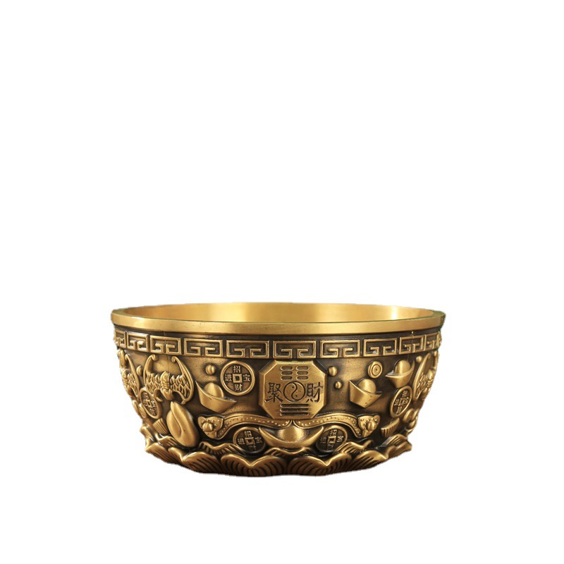 Pure copper polyppot swing piece Shen Wanzo with solid gossip poly-finance copper bowl trick rice cylinder home living room decoration-Taobao