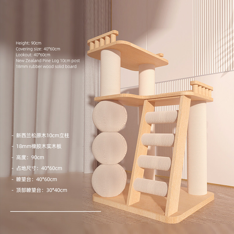 Luxury Solid Wood Feline Climbing Cat Shelf Small no-floor Cat Scratching Board Cat Litter Cat Tree Integrated Kitty Toy Space Capsule-Taobao
