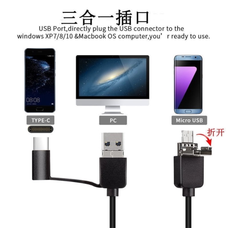 5 million HD camera Android phone endoscopic pipeline industrial automotive carbon air conditioning probe