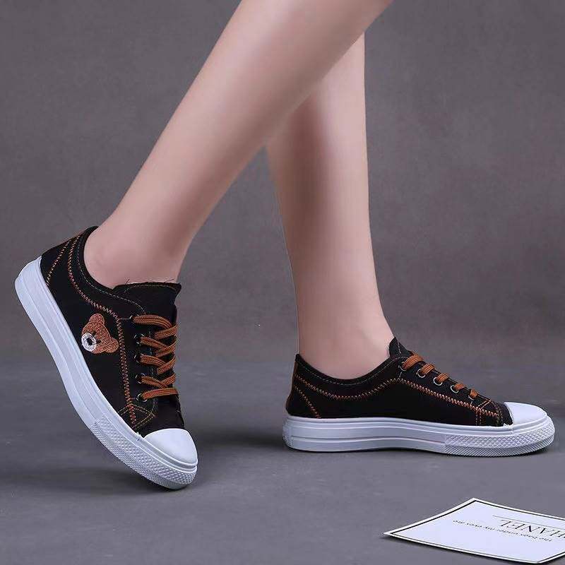 Factory direct sales canvas shoes female students Korean casual flat shoes daisy lace-up thick-soled shoes