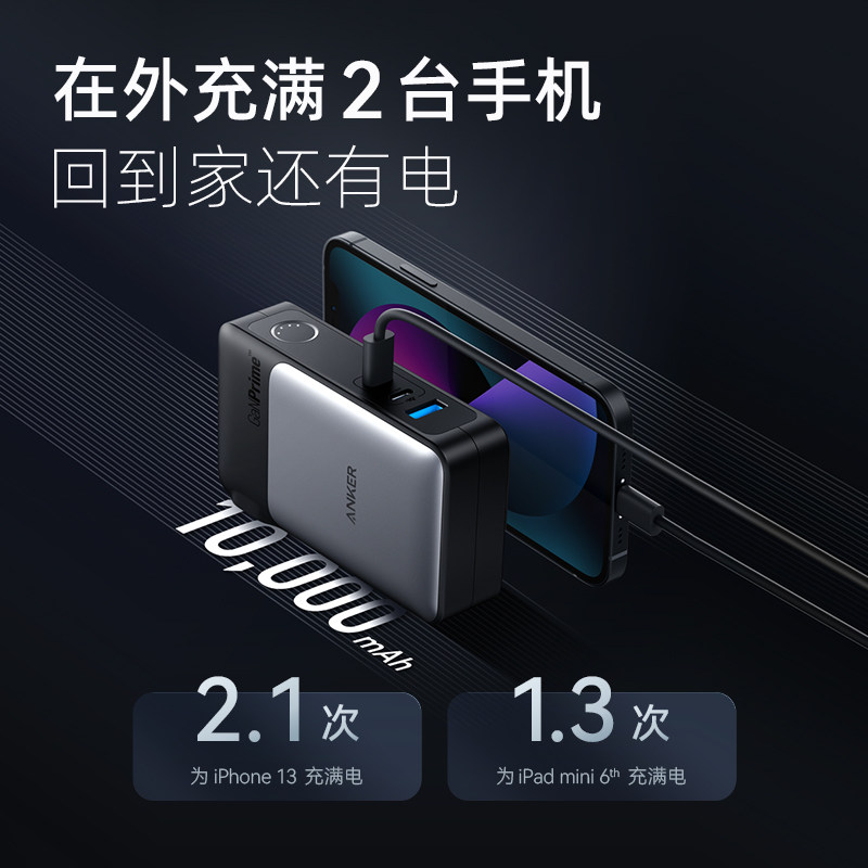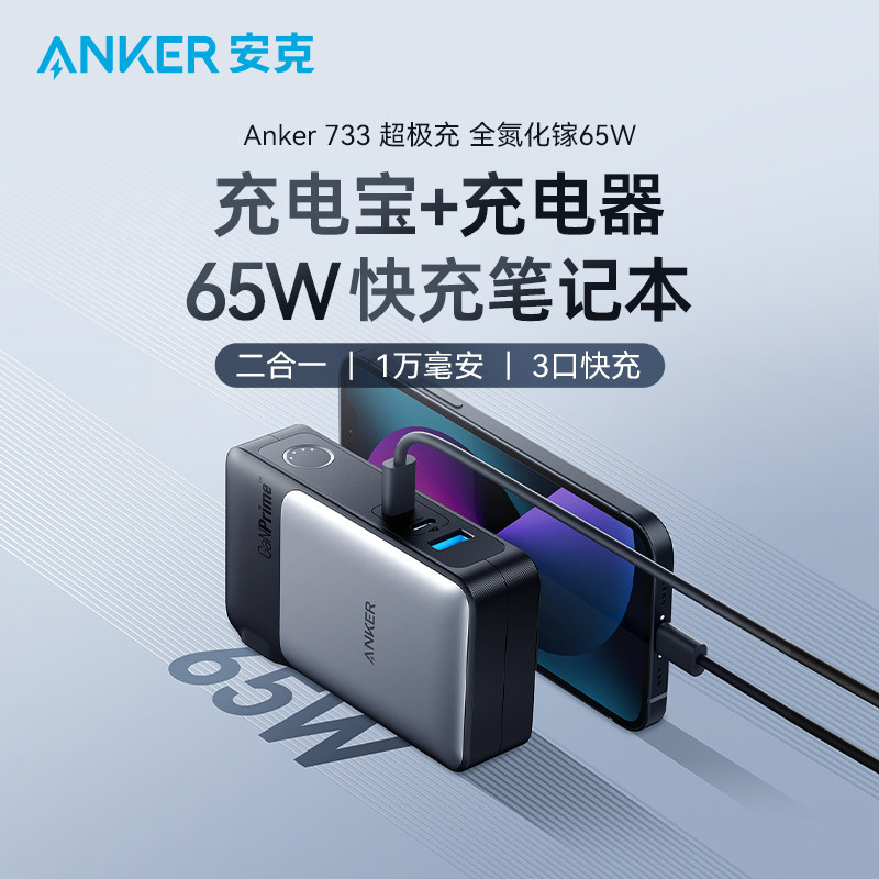 Anker is suitable for Apple Android fast-charging mobile phone charging pall gallium nitride 65W two-in-one mobile power supply