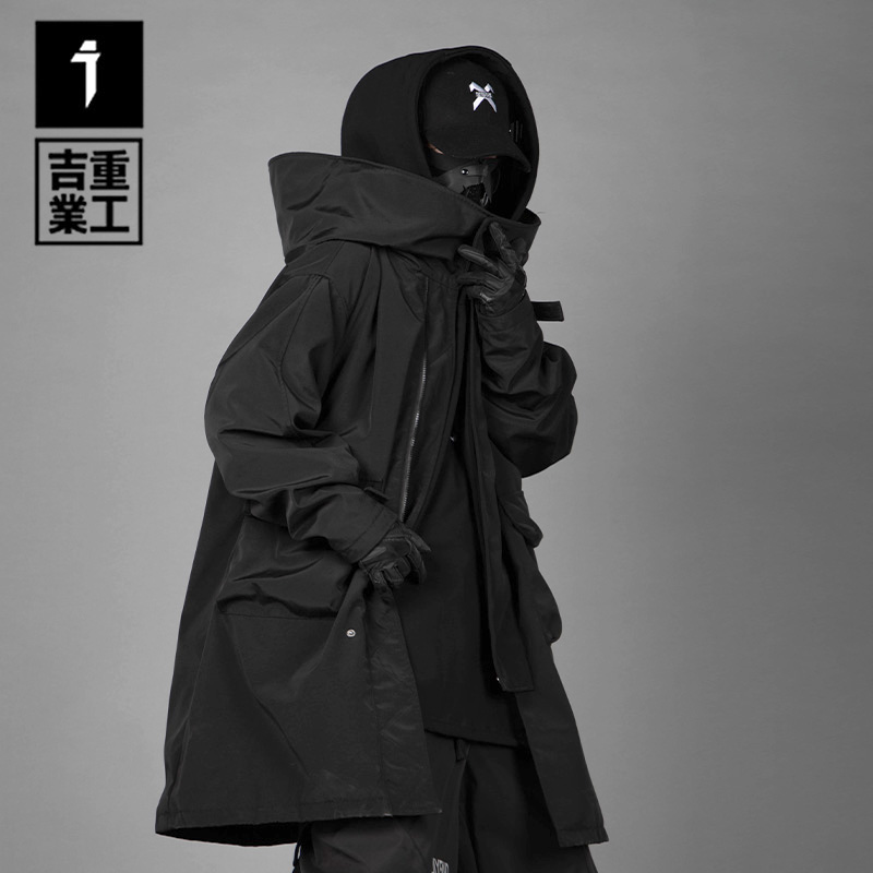Giye Heavy work autumn winter new fake two pieces tooling splicing plus cotton wind clothes men loose and casual mid-coat wave-Taobao