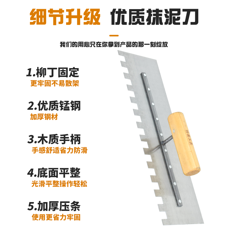 Sichuan Yue Generous Tooth with teeth Tooth Plastering Knife Manganese Steel Trowel Serrated Serrated Serrated Serrated Clay Knife Scraping Clay Tile Scraped Ash Cutter-Taobao