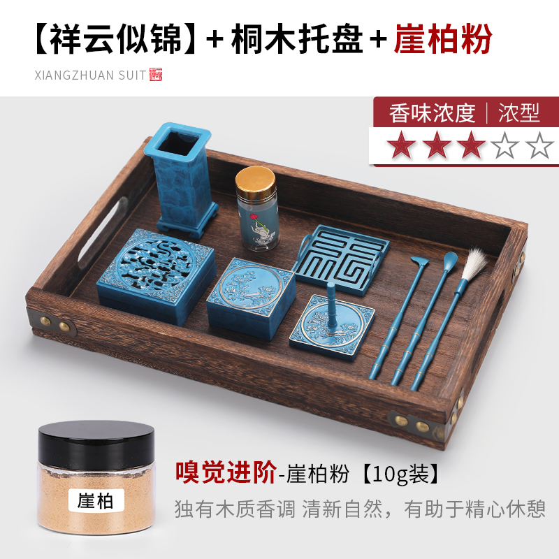 Bronze Burned Blue Liang Road with Introduction Set Household with fragrance fragrance fragrance fragrance spoon Xiangyun fragrance stove