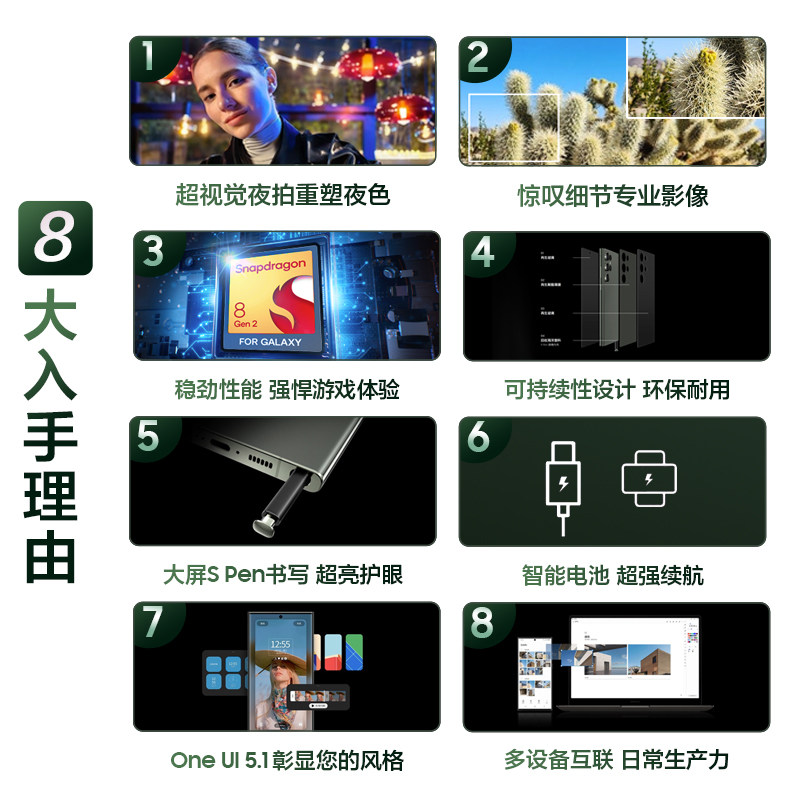 (Presale Snatched first 6-period interest-free) Samsung Samsung Galaxy S23 Ultra phones Official Flagship Smart Photo Gaming Mobile Phone 200 million Pixel Second-generation DRAGON