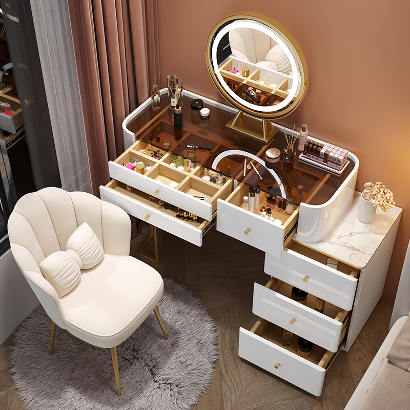 Dressing table bedroom modern minimalist light luxury small storage cabinet integrated tempered glass net red ins style makeup table