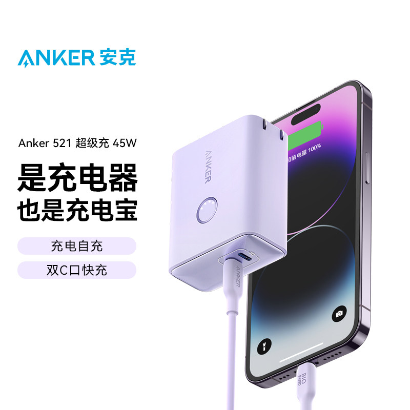 Anker Anker applies to the Apple iphone14 two-in-one phone fast charging charger 45W mobile power