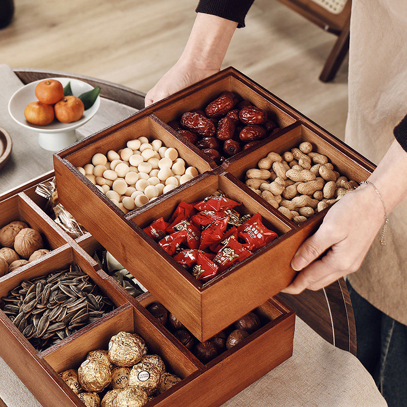 Gnaise dried fruit box nut snacks containing living room Home melon Candy Solid Wood Fruit Pan New Chinese-Taobao