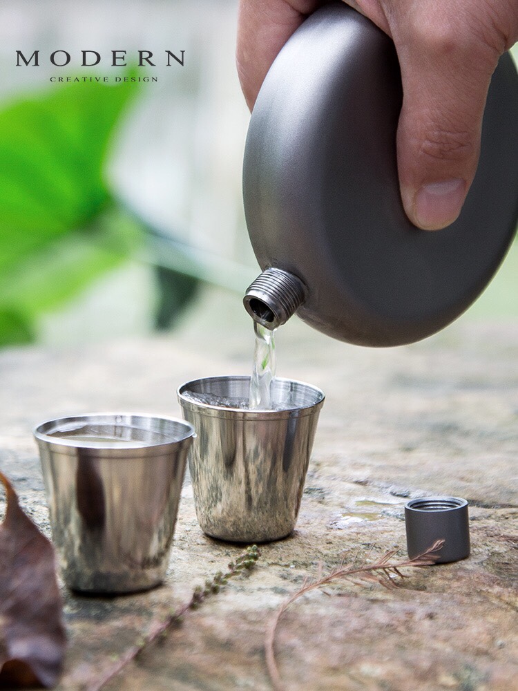 German MODERN titanium alloy small wine pot portable with outdoor imitation ancient wind wine jug upscale lettering creative gift-Taobao
