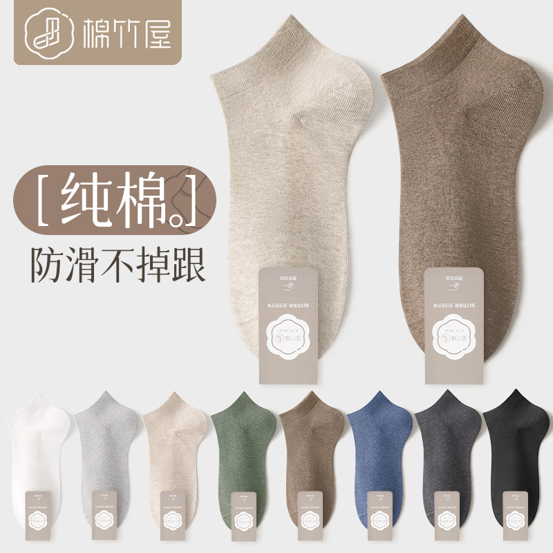 Socks Men's Summer Short Socks Thin Section 100% Cotton Antibacterial Deodorant Sweat Absorbent Breathable Summer Men's Boat Socks
