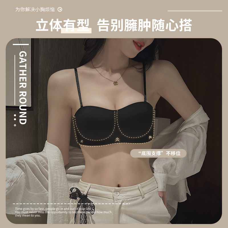 Beauty back underwear women's small breasts gather bra cover Summer thin section 2023 new cross fine shoulder strap rub chest anti-skinny-Taobao
