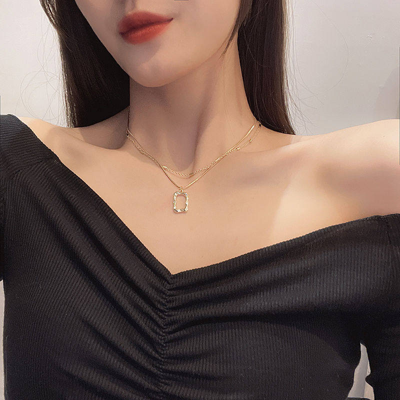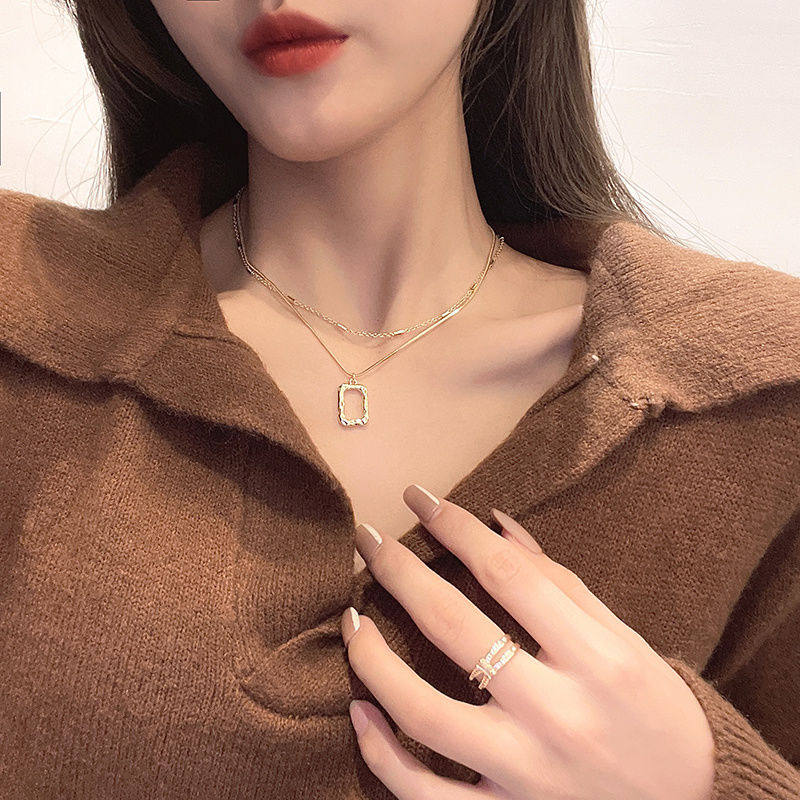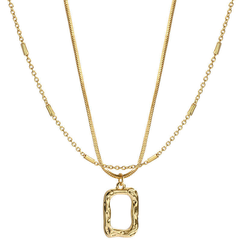 Double laminated wearing geometry square necklace with double laminated wearing