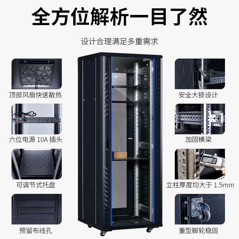 Network cabinet 42u37u32u22u18m server monitoring switch weak motor room rack chassis customization