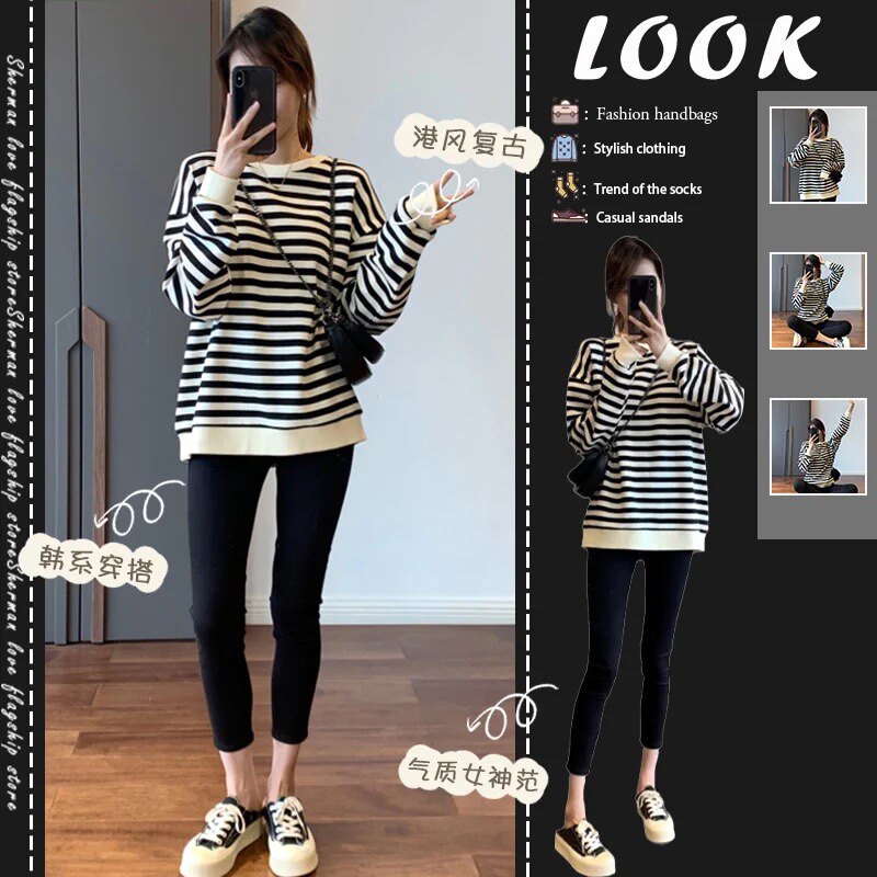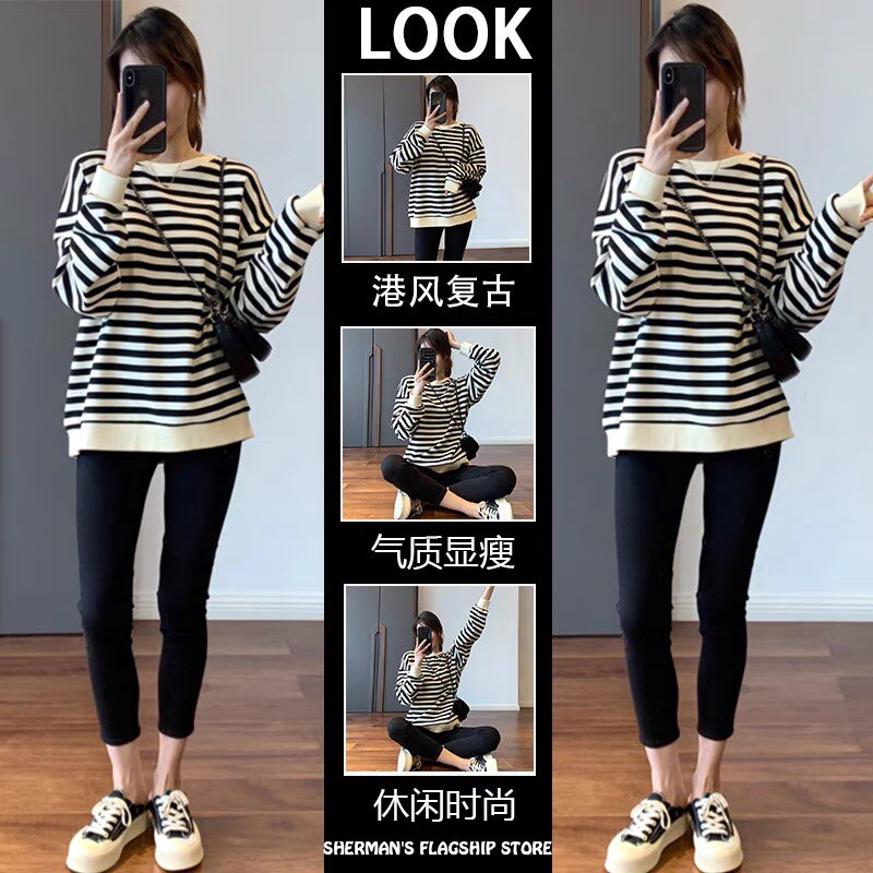 The Jing Kiri Gestational Woman Dress Spring Loaded Suit Fashion New Striped Sweater Blouse pregnant woman pants Two sets of foreign air trendy-Taobao