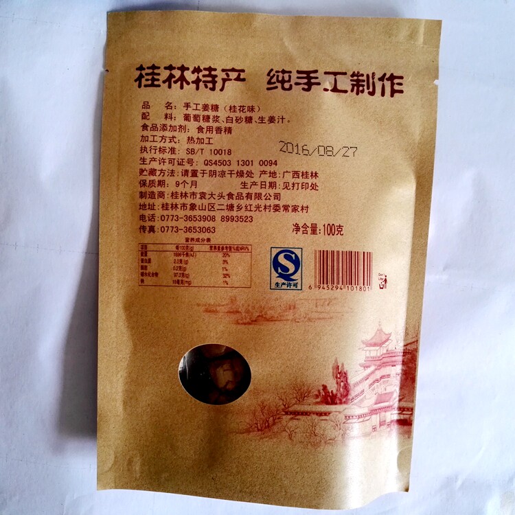 Guilin specialty Yuan Datou handmade ginger candy 100g hard candy Huichang handmade ginger candy 100g delicious snacks