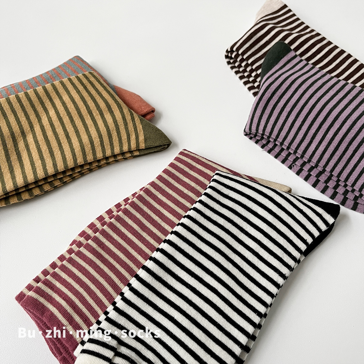 Unknown socks coloured fine stripes spring and autumn Korean black and white in tide is simple to put in daily middle socks