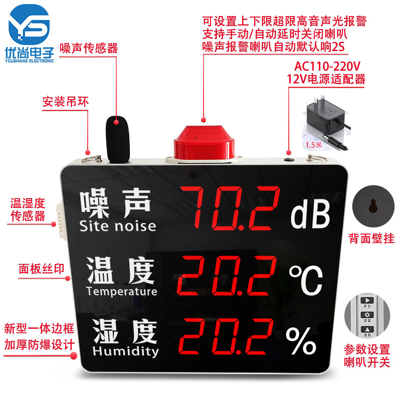 Large screen wall-mounted decibel instrument noise tester Humidity Noise Meter Bar Sound Noise Alarm Display-Taobao