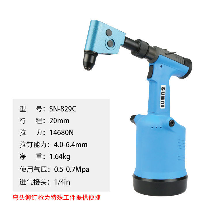 SN - 828 straight angle pull gun 90 degree stainless steel pneumatic riveting gun can rotate 360