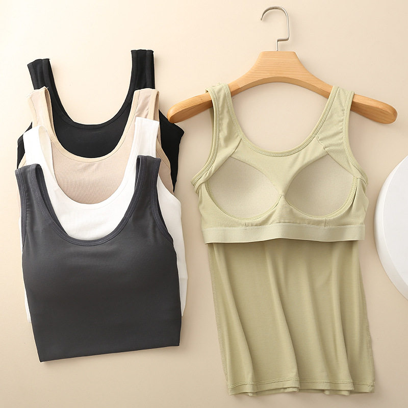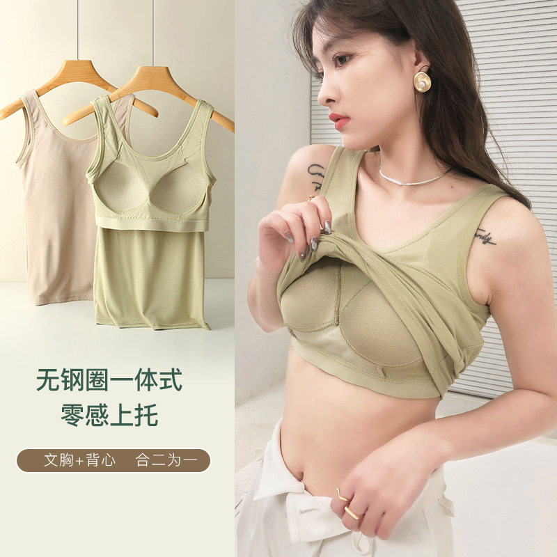 Beautiful back wide shoulder camisole women's summer round tie chest pad inner bottoming one-piece fixed cup outerwear jacket