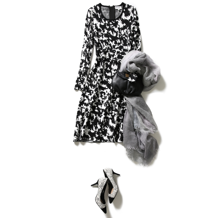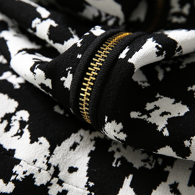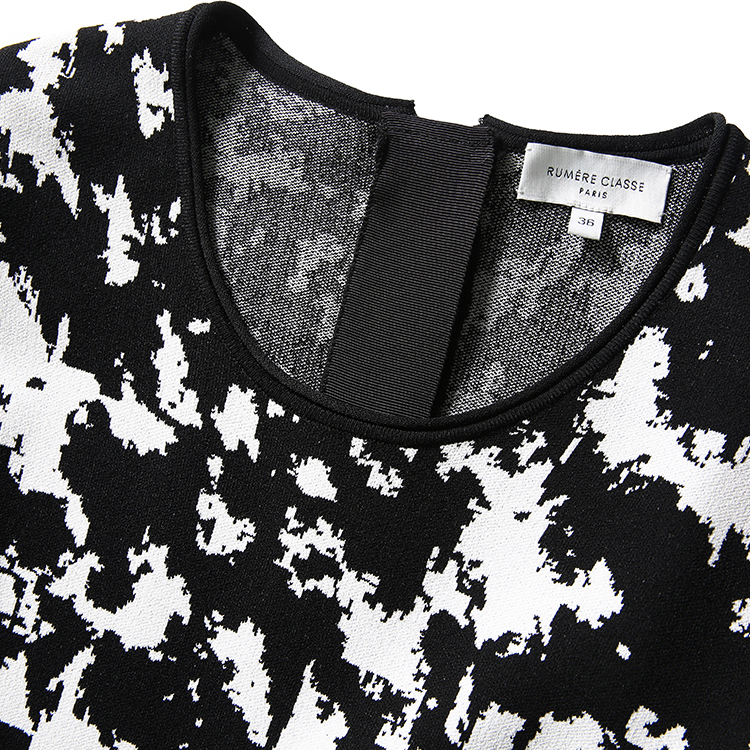 Rongmei ( QZ0608861 ) Black and White and Zipper after Zipping round - collar long - sleeved dress