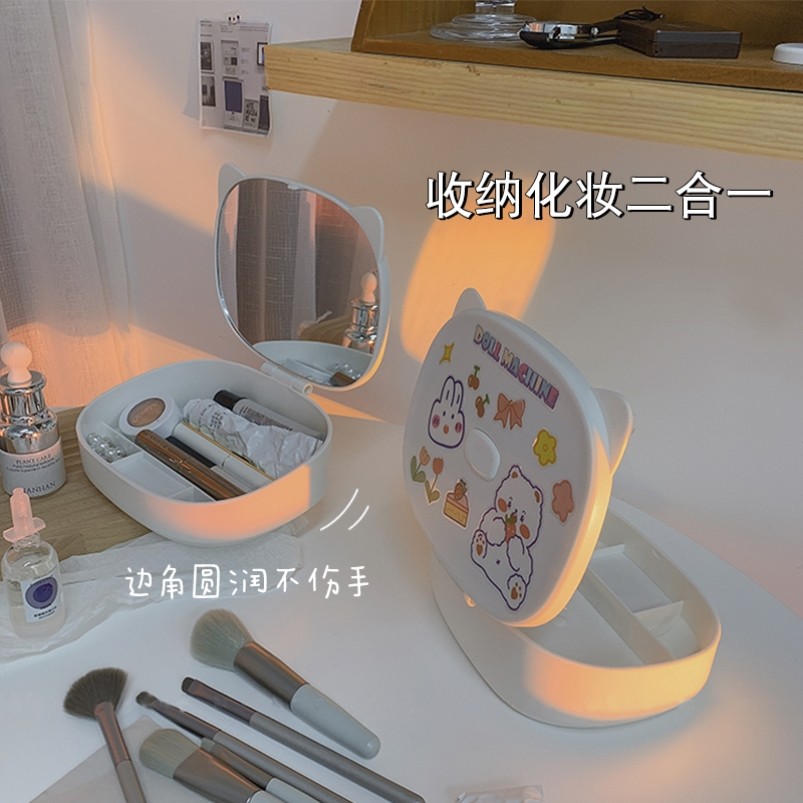 White Mirror Collection Box combines a color mirror collection box combination two Pink (Cubs Mirror Case Box I) Milk white (Cubs mirror container box II) Vertical green (Cubs mirror receives