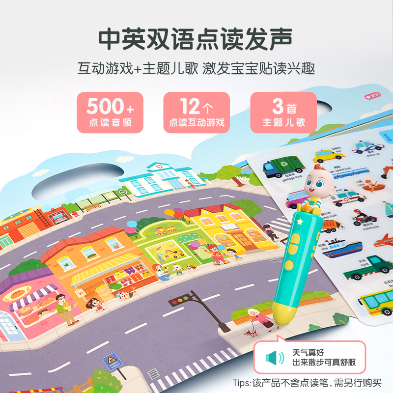 Baby Bus Super Baby JoJo Jelly Sticker Book 3 Book of English Bilingual Points Read Ploy Stickup Toys-Taobao
