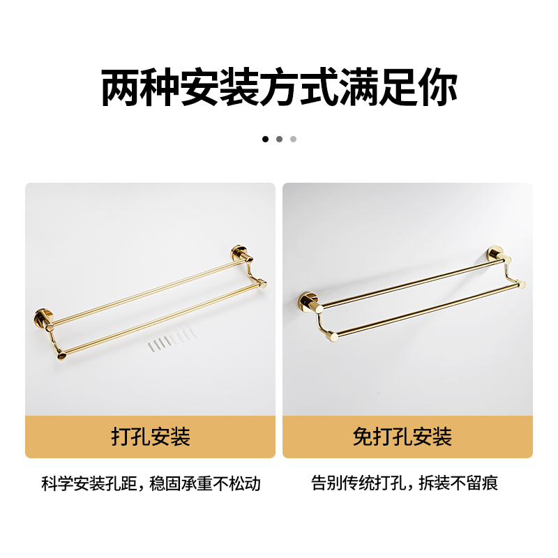 Full Copper Towel Rack Toilet Free to punch shelve Shelve Hung Bar Bathroom Bathroom bathroom Golden Light Lavish Double Pole Towel Rod-Taobao