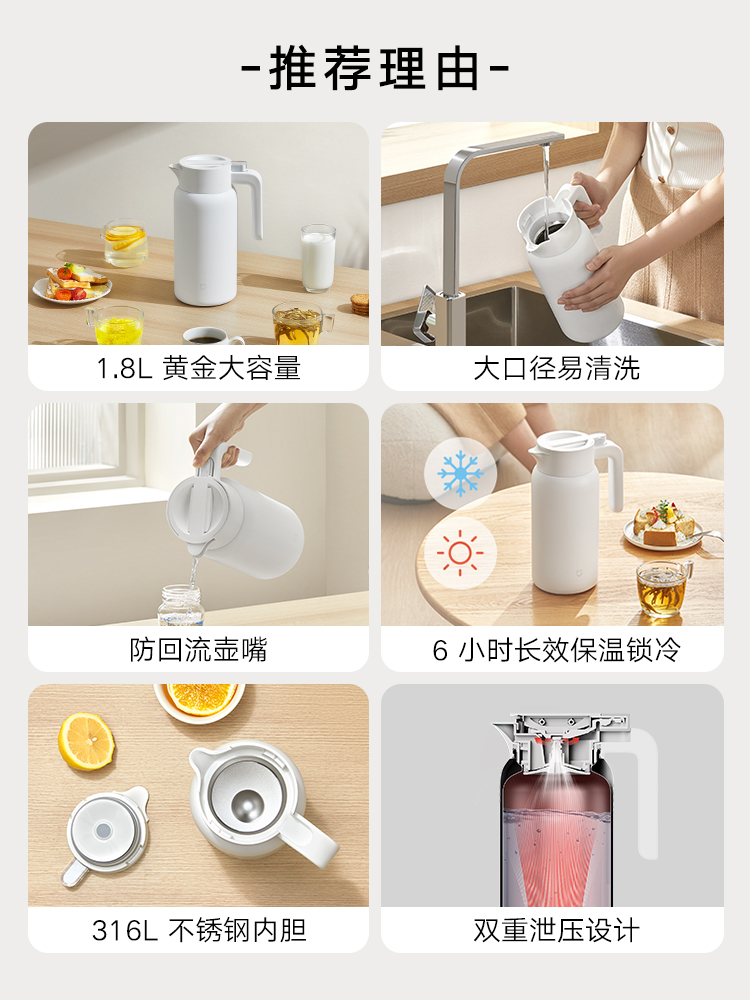 Xiaomi Mi Family Insulated Pot Home Large Capacity Kettle 316 Stainless Steel Vacuum Insulated Bottle Hot Water Bottle open water bottle-Taobao