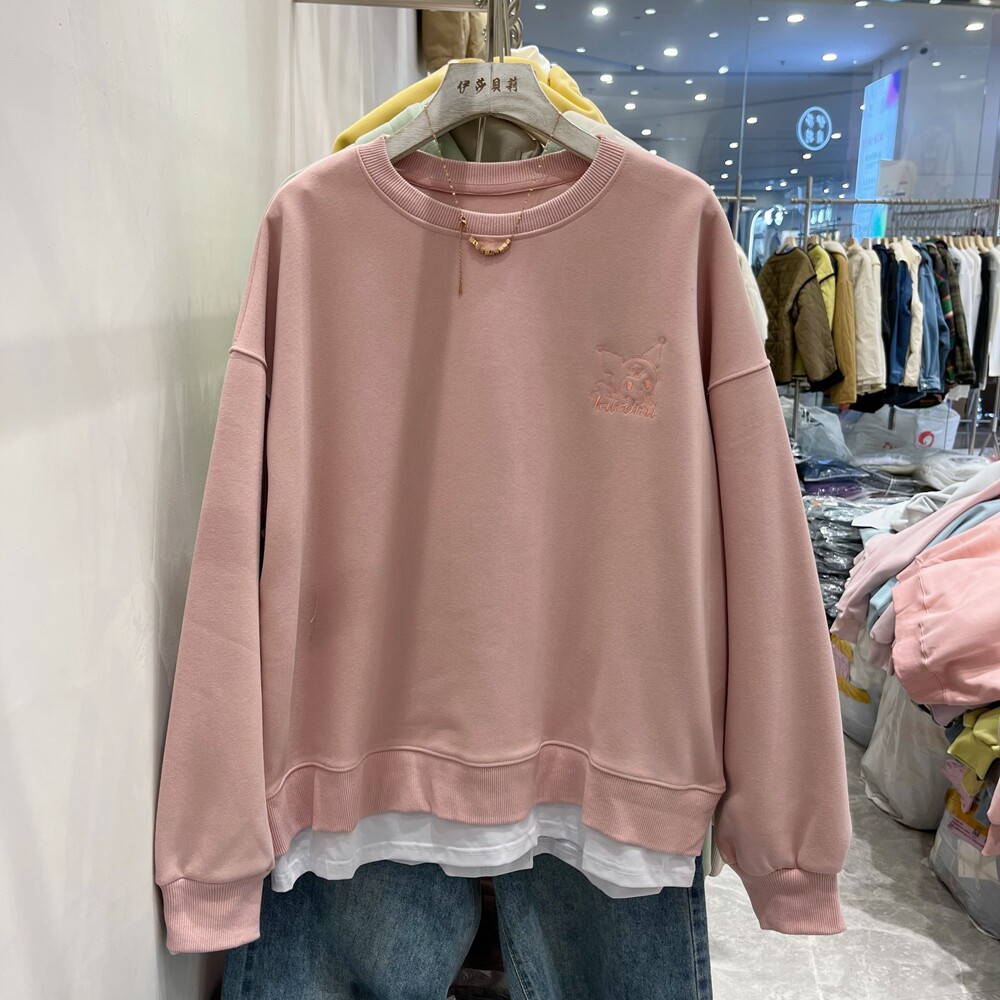 Two pieces of back embroidery dress girl in spring 2023 new loose long sleeve tops and fashion gas