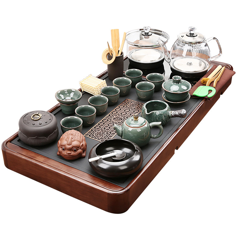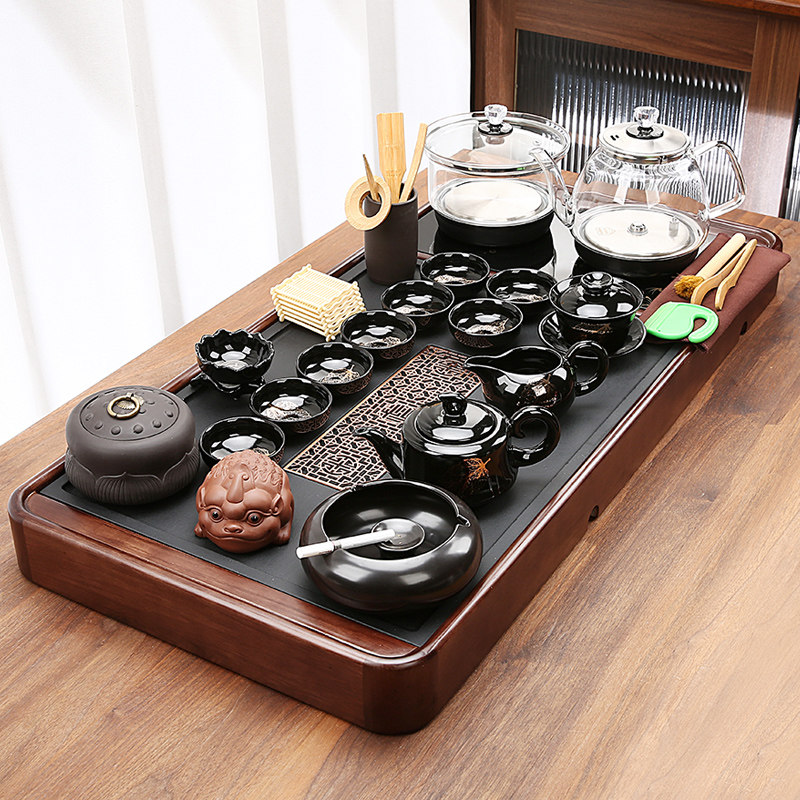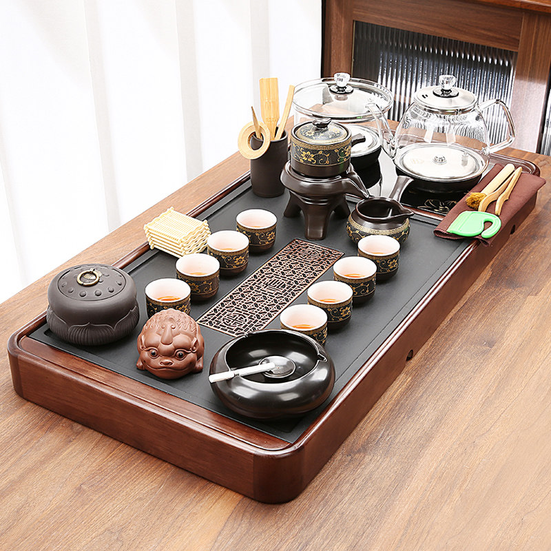 Automatic new tea disk set in one-body kettle full household kung fu purple sand tea set stone tea table complete