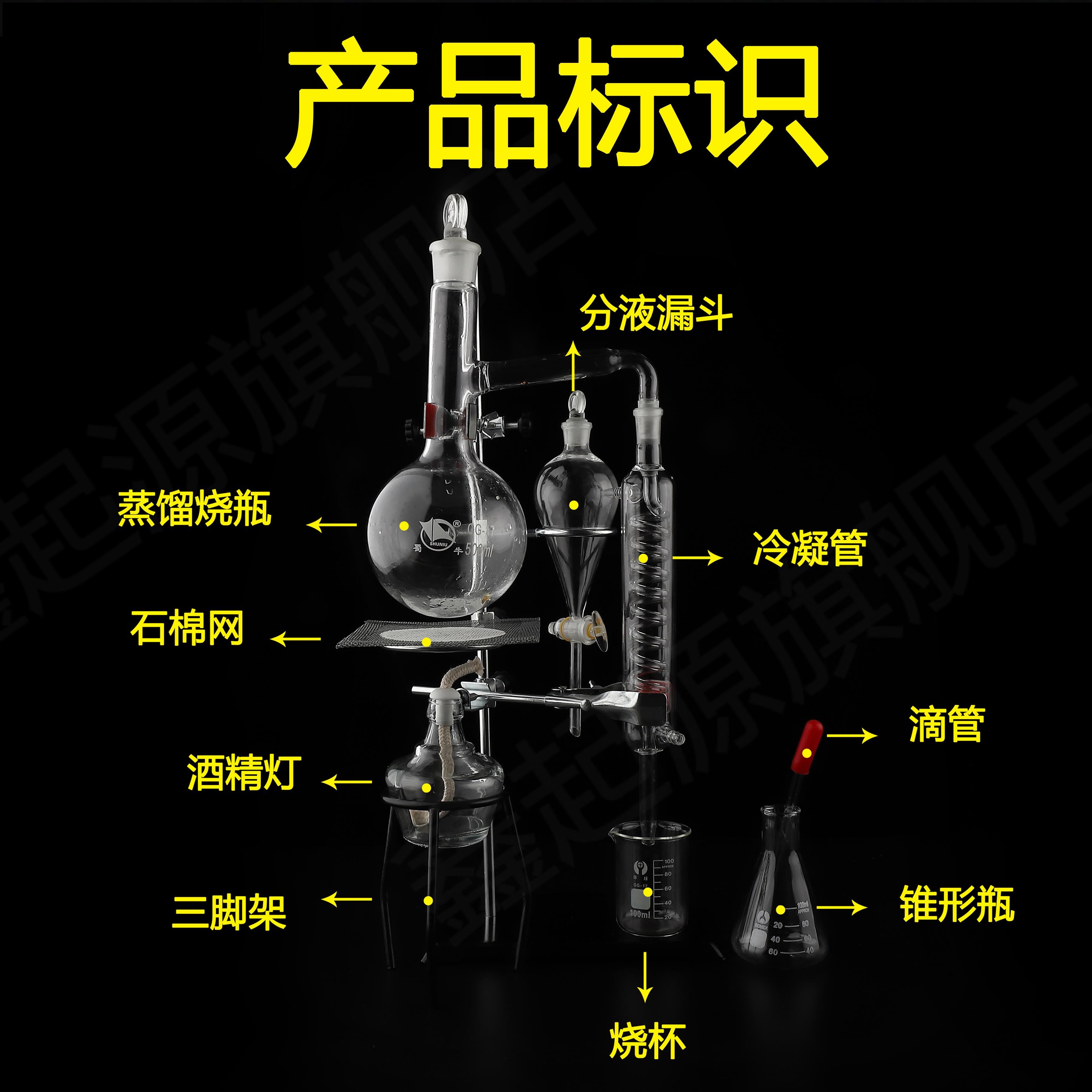 Full glass distilled water device distilling device 500ml 1000ml serpentine condensing tube petals purified floral water distilled water distilled water distilled and distilled experimental suit chemical teaching instrument