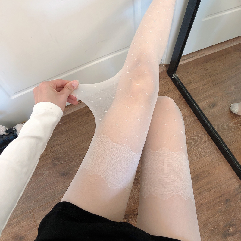 Female hair lace dot stockings Japanese retro milk white bag core wire pantyhose spring and summer thin sexy black wire