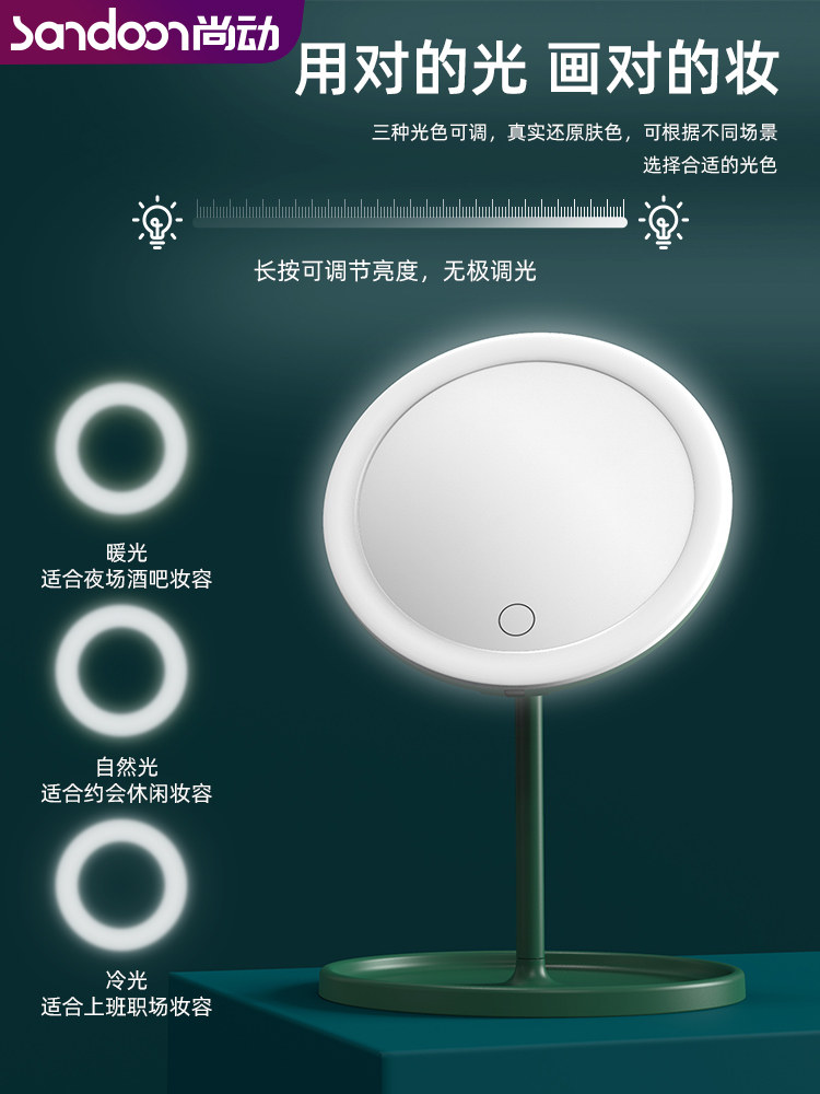 Folded LED mirror makeup mirror light with lamp large mirror three color maiden dresser desktop mirror large in