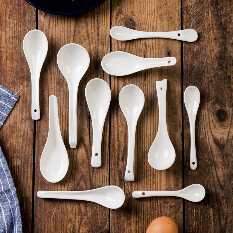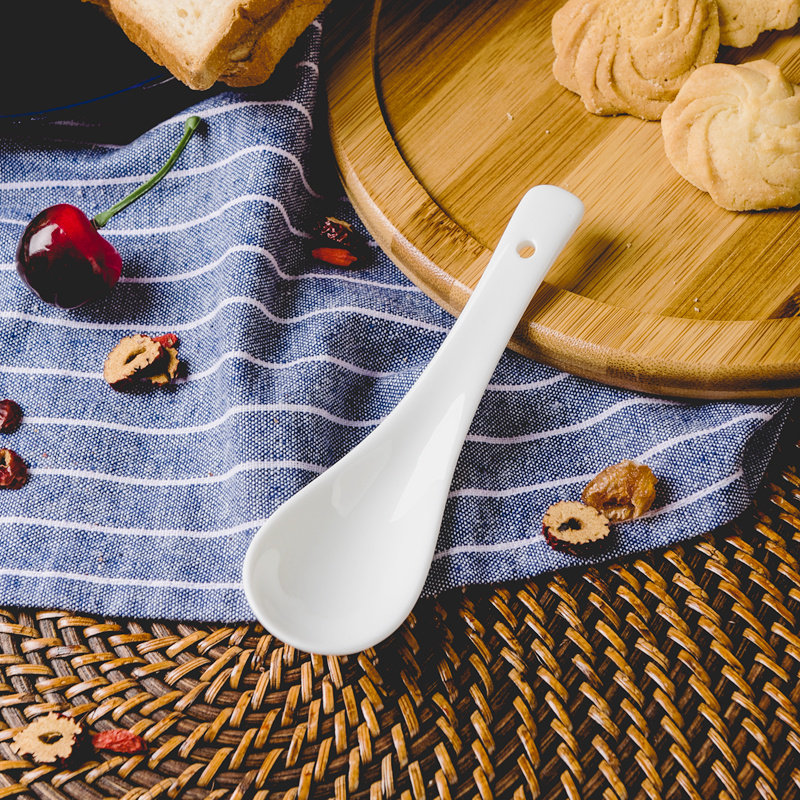 Pure white bone porcelain household small spoon creative ceramic long handle coffee spoon taste spoon tablespoon