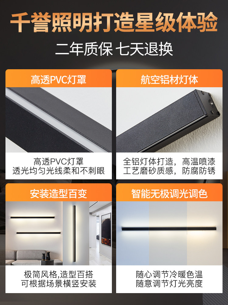 Long wall lamp-60CM-neutral light straight wall lamp-60CM-tricolor light straight wall lamp-60CM-no polarization dimmer band remote-controlled straight wall lamp-80CM-neutral light straight wall