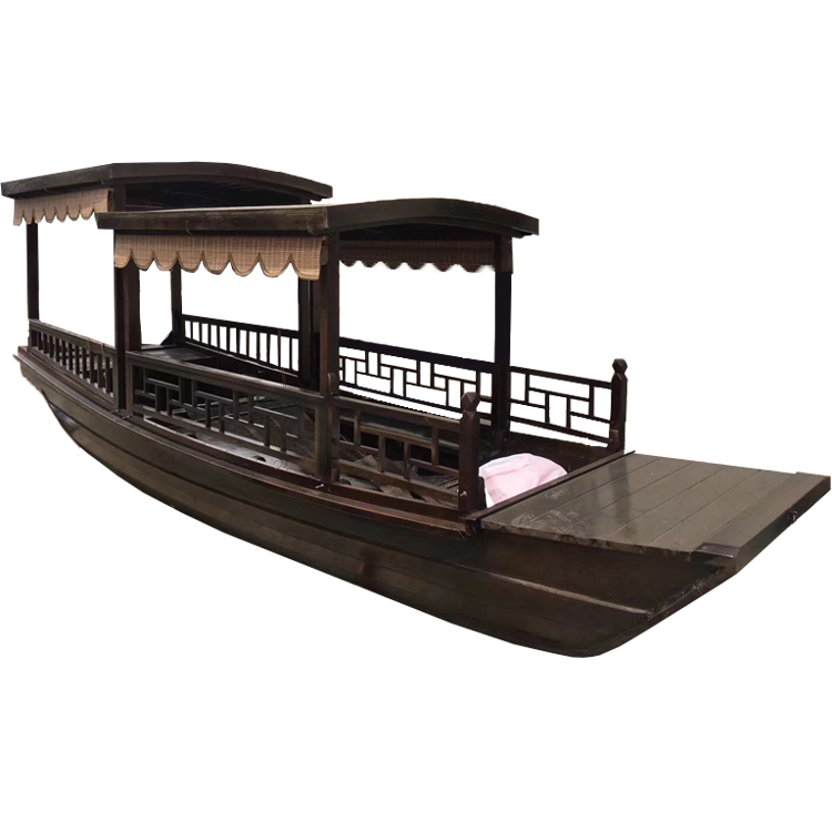 Wooden boat sightseeing tourist boat imitation ancient urcanopy boat landscape decoration boat hand-drawn electric cruise ship solid wood water catering boat-Taobao