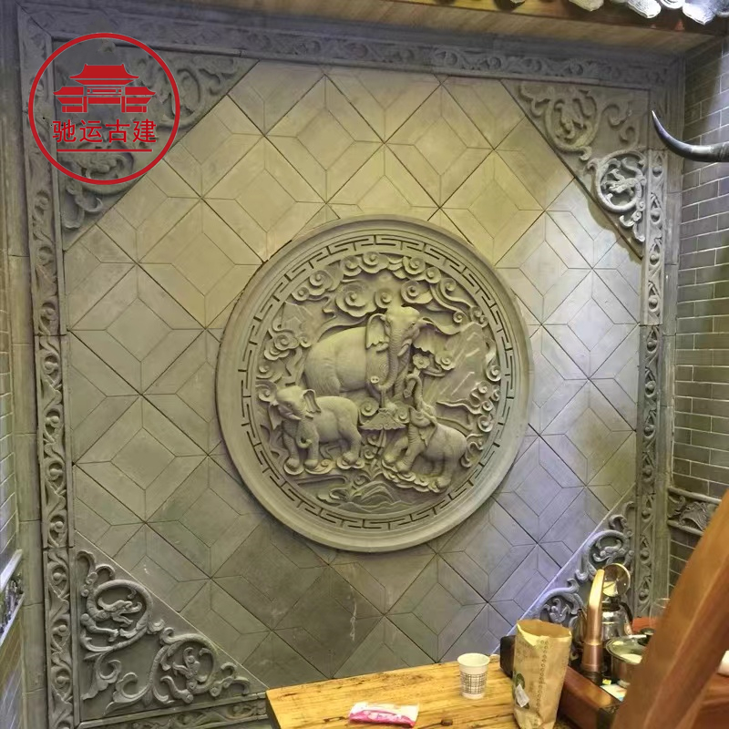 Antique brick Sculpture Auspicious Ruyi Round Elephant Chinese Courtyard Shadow Wall wall Wall Background Wall Relief Decorative Pendant-Taobao